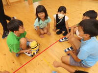 白団は、「貨物列車」でふれあっていました。「かもーつれっしゃ、しゅっ、しゅっ、しゅ~♫」という歌声に合わせて次第に繋がっていきます。みんな楽しそうです。