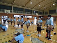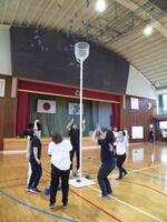 1学期最後の参観日、PTA親睦のためのスポーツ大会「玉入れ」をしました。「アジャタ」というスポーツ玉入れで、玉の全てをかごに入れ終わったら競技終了ですが、3分の制限時間で終了しないチームが続出。ほぼ3分間ずっと動きっぱなしのかなりハードな大会になりました。残念ながら、昨年度の記録1分台更新はできませんでしたが、8年生保護者チームが1位・2位を独占しました。8年生保護者チーム、おめでとうございました!