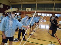 この日の練習は1.5メートルほどの長さの棒でしたが、御田祭当日は、長さ5メートルの竹を使って行います。30分以上ほとんど休みなしで行うので大変です。