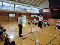 県総合体育大会の激励会は、幼稚園から9年生までが一緒に参加して行います。上級生(7・8・9年生)の姿を間近で見て、「自分もあのようになるんだ(なりたい)。」といった憧れがうまれます。このことも、義務教育学校の強み(よさ)の1つだと感じています。大会本番は上位入賞とまではなりませんでしたが、みんな全力を尽くして見事な活躍を見せてくれました。