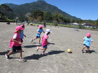 10月6日(金)に西郷幼稚園で3園交流があり、ヴェロスクロノス都農の方が見えて、サッカー教室が行われました。ボールと友だちになるために、高く投げてキャッチしたり、ドリブルでお散歩したりと夢中になって取り組みました。最後は、年中・年長に分かれてサッカー対決。ですが、ボールは1つではなくいくつもあるんです!あっちにいったりこっちにいったりとボールを追いかける子ども達はとても活き活きしていましたよ。
