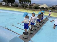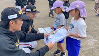 最後には、幼稚園生VS宮崎サンシャインズでミニゲームも行い、選手が打ったボールを「わあ~!!」と歓声を上げながらみんなで追いかけていました。お見送りでは、バスが見えなくなるまで手を振っていた子ども達。短い時間でしたが、かけがえのない思い出が出来ました。