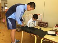 11月8日(水)に8年生が家庭科の授業で触れあい体験活動として幼稚園に来てくれました。手作りのマスコットと名前付きの折り紙をプレゼントしてもらい幼稚園生は大喜び!さっそく身につけている子もいましたよ。読み聞かせをしてもらったり、一緒に製作をしたり、お外で遊んだりとたくさんの楽しいことを一緒にできて終始笑顔の子ども達でした。