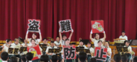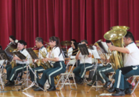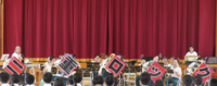 演奏会は、本校の園児児童生徒全員が楽しめるような選曲で構成されていました。さらに、フラッグダンスや指揮者体験コーナーもあり、 みんなのワクワクが倍増!初めに1年生が指揮者に挑戦しました。児童の指揮に合わせ、演奏者は音楽を奏でていました。スローになったり、止まったり、止まったかと思えばまた演奏が開始されたり・・・・その姿から、「指揮者」と「演奏者」の関係性に改めて気づいた子どもたちもいたのではないでしょうか。その光景に会場はさらに和やかな雰囲気に包まれました。次に9年生が指揮者に挑戦!さすがは最上級生!流れるような指揮で音楽隊を引っ張りました。2人ともとても上手でした。