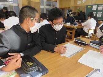 10日(水)に「図形の調べ方」の内容で合同数学を行いました。9年生と8年生がペアになり、時間いっぱい学び合いました。聞きやすい雰囲気の中、学ぶ8年生だけでなく、伝える9年生も「どう教えるか考えることで理解が深まった」「とてもよい復習になり、自分にとってもよい学びの時間になった」とのふり返りの声が聞こえました。今後も計画的にこのような活動を行っていきたいと思います。