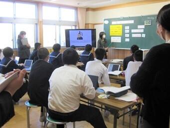 15日(月)に北部教育事務所主催の1upサークルで本校指導教諭の研究授業を行いました。管内の10名を超える先生に8年生の授業を見ていただき、その後の研究会でも活発に意見交換が行えました。今日の授業で感じたことを、先生方の明日からの授業のヒントにしてほしいです。