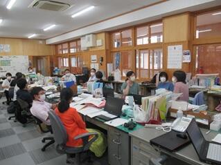 来月から本校でもタブレットが導入される予定です。夏季休業中に、導入に向けての研修会を行いました。初めこそ慣れないソフトの扱いで悪戦苦闘していましたが、その利便性や効果的な方法を学び、意欲的に研修を受けていました。ICT教育の充実やコロナ対策にも大切なスキルですので、これからも研修を深め、授業等に活かしたいと思います。