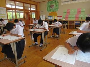 20日(火)に全員そろって1学期の終業式を行いました。校長先生から「学びの光(通知表)」と「命」についての話がありました。表彰や各先生からの話の後、前期ブロック・後期ブロックに分かれての座談会を行いました。1学期がんばったことのふり返りや、反省をふまえて夏休みや2学期にがんばりたいことを議題に対話活動を行っていました。
