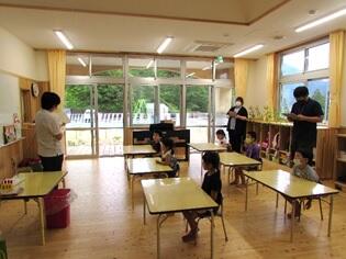 5月31日(月)から幼稚園に教育実習生が来て学んでいます。そのまとめの第一段階として15日(火)に研究保育を行いました。多くの先生達の前ではじめこそ緊張していましたが、終始笑顔で授業が展開し、子ども達と一緒にがんばっていました。コースターも上手にできました。残り少ない期間も楽しく過ごして欲しいです。