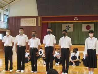 2日(水)に地区中総体激励会を行いました。今週末からの大会に備え、4つの部が全校の前で決意表明を行いました。それぞれの部の熱い思いがヒシヒシ伝わりました。西郷義務教育学校の代表として精一杯力を発揮して欲しいです。全校で応援しています。