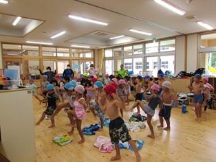 9日(金)に町内の3園のお友達が集まり交流会を行いました。子ども達はこの日をずっと楽しみにして、準備もしてきました。ホールで過ごした後、水遊びを楽しみました。天気も良く、ゲームも盛り上がりました。給食もみんなと食べて、楽しかったようです。最後は歌のサプライズ出し物もあり、あっという間に時間が過ぎました。次の交流会も楽しみです。