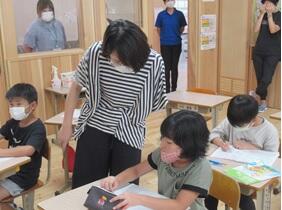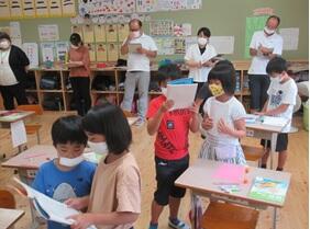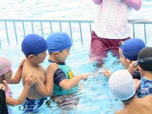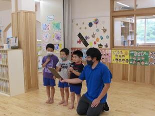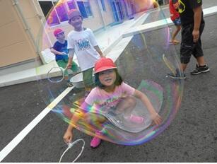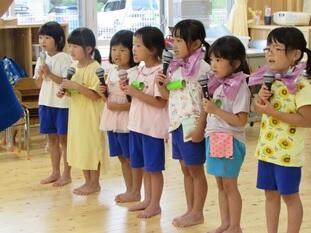 9日(金)に町内の3園のお友達が集まり交流会を行いました。子ども達はこの日をずっと楽しみにして、準備もしてきました。ホールで過ごした後、水遊びを楽しみました。天気も良く、ゲームも盛り上がりました。給食もみんなと食べて、楽しかったようです。最後は歌のサプライズ出し物もあり、あっという間に時間が過ぎました。次の交流会も楽しみです。