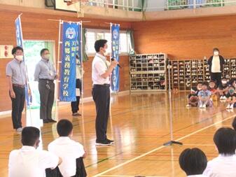14日(水)に今週末から始まる県中学校総合体育大会に向けての激励会を行いました。各部からの力強い決意の言葉の後、校長先生から励ましの言葉、選手宣誓と続きました。9年生にとっては最後の大会です。悔いなく精一杯の力を発揮できることを祈ってます。がんばれ!!西郷義務教育学校生!!