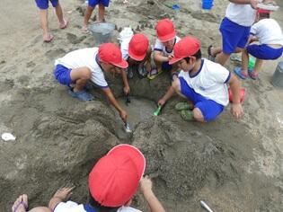8日(木)の図工の時間に、砂場で活動を行いました。山を作ったり、トンネルを掘ったりといろんなアイデアを出しながら時間を忘れての活動でした。手や足だけでなく顔も真っ黒になった1年生でした。