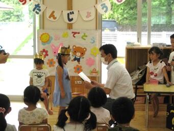 24日(木)に6月の誕生会を行いました。幼稚園でも年長さんが「どのようなお誕生会にしたいか」と話合いを行い、誕生会の形も変わりつつあります。主体的に学ぶよいチャンスととらえ、子ども達の意見を大切に活かしていきます。