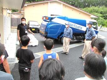 1日(木)に4年生が社会科の授業で「ごみのゆくえ」の授業で実際にゴミ収集の様子を見学しました。収集されている方の話の他、町民生活課の中田さんに詳しく説明してもらいました。改めていろいろな仕事で自分たちの健康な生活が成り立っていることを学びました。