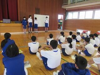 本校では縦割りのなかよし班で活動する機会も多くあります。これまでの活動を通して後期ブロックの子ども達の「前期ブロックの児童への接し方を学びたい」との声から生徒会が各ブロックの最上級生向けに講習会を開催しました。低学年の担任経験のある先生の話やゲームなどを通して「同じ目線で話す」「名前を呼んで話す」など多くの発見がありました。次はこの学びを実践につなげて欲しいと思います。