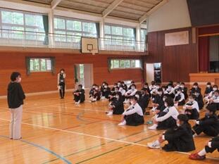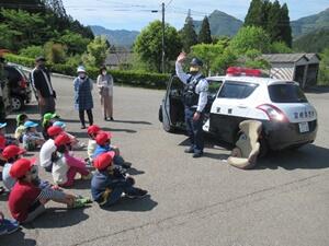 15日(木)に2年生までを対象に交通安全教室を行いました。西郷駐在所の上野さんに講師とし来ていただき、クイズ形式でのお話や実際の路上での指導など丁寧に教えていただきました。教室で学んだことを忘れず、交通安全に気を付けて欲しいです。