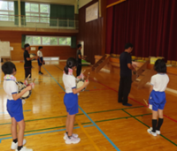 6年生は、昨年舞ったことがあるため、道具の扱い方にも慣れており、一つ一つの動きを確認しながら、舞っていました。5年は、祭り等で臼太鼓を見たことがあるものの、実際に舞うのは初めて。指導者の方々や6年生の動きを真似ながら意欲的に活動していました!子どもたちの成長が楽しみです。