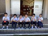 その後、御田祭前日祭に行われた日向田植唄全国大会の表彰がありました。6月中旬より週2回ほど、指導者の堀田さんに来ていただき、昼休みに練習してきました。入賞できた子もそうでなかった子もよく頑張りました。ご協力をいただいた堀田さん、誠にありがとうございました。