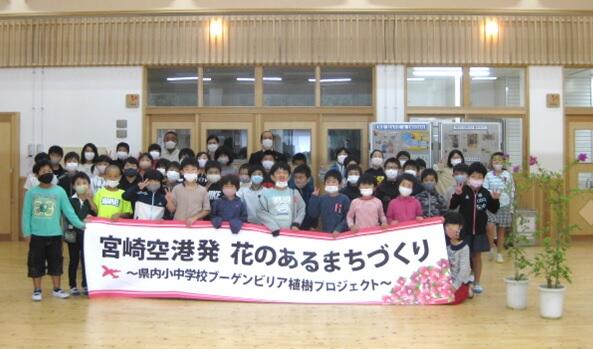 21日(木)に宮崎ブーゲンビリア空港の方が来ていただき、ブーゲンビリアの贈呈式が行われました。ブーゲンビリアが大きくなり、学校を鮮やかに色づけてくれる日が楽しみです。緑の少年団(1~4年生)が大切に育てます。ありがとうございました。