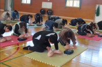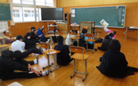 今年度 最初の「読み聞かせ」(後期ブロック)の時間の様子です。何やらみんなで、体を動かしています。 読み聞かせボランティアさんの朗読に合わせながら、ぐっーと上に体を伸ばしたり、ぐっーと横に倒したりと・・・・。 みんなの顔は真剣そのもの。 朝で体が思うように動かない状状態に苦笑いしながらも、リラックスモード。 楽しそうです。