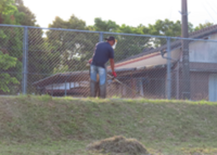 運動会前のPTA奉仕作業。主にグラウンド回りの草刈りを行いました。今回のPTA奉仕作業は、前期ブロック園児児童の保護者の方が対象です。 私たち職員も、外回りの安全点検を終え、午後3時45分ぐらいより草抜き、草刈りなどを行いました。PTA奉仕活動の開始時刻は午後5時でしたが、早く来られた保護者の方々が次々に草刈り機で作業を進められ、予定していた時間より早く作業が終了しました。 作業を終えた後のグラウンドは、スッキリ!! 思わず駆け出してしまいそうになるぐらいのスッキリ! 子どもたちが全力で力を発揮する場が整いました!保護者の方々、本当にありがとうございました。