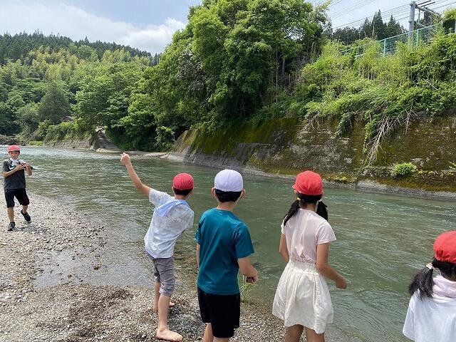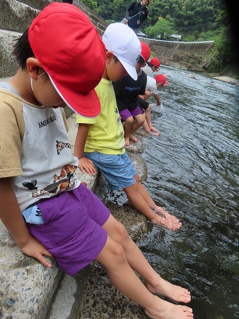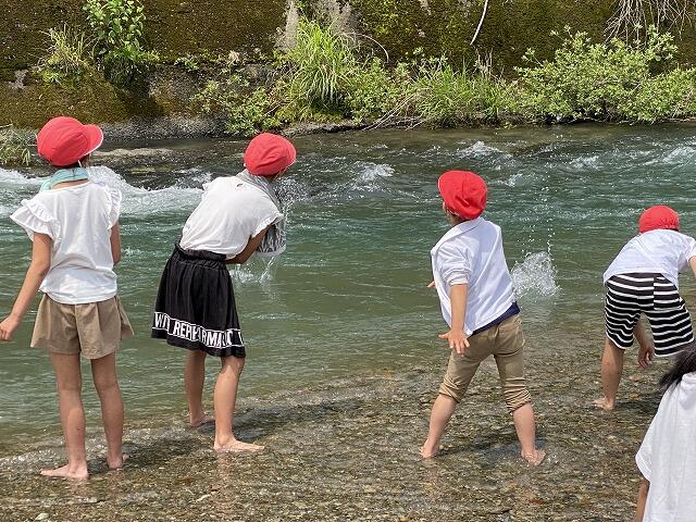 川では、水切りに挑戦したり、足先を付けて涼んだりしました。
