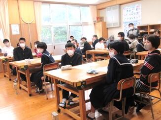 1日(月)と2日(火)の給食時間にリモートで、今週末に県中学校秋季大会に出場する部活の代表が決意を述べました。それぞれが目標を立て、大会に臨む強い気持ちが伝わったあいさつでした。今回は部活動生全員が予選を通過し、県大会への出場権を得ています。出場者全員が悔いなく大会を終えられることを願っています。がんばれ!西郷義務教育学校生!!