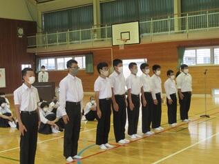 23日(水)朝の全校朝会で先日行われた地区中総体の表彰を行いました。表彰のあとは、部活ごとに、県大会に向けた熱い思いも述べてくれました。全校からの激励を込めた大きな拍手が本番でのパワーに繋がってくれることを願っています。その他、英検の表彰も行いました。こうした一人一人のがんばりをこれからも積極的に表彰していきます。