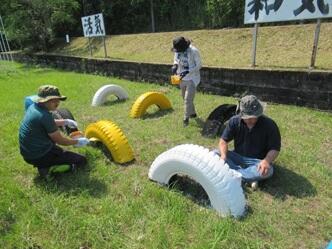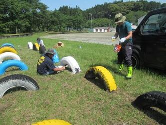 8日(火)は梅雨の晴れ間を利用して、PTAの役員さんが運動場のタイヤのペンキ塗りを行ってくれました。4色に塗られたタイヤは遠くから見ても鮮やかです。子ども達はタイヤで遊ぶのが大好きなので、これからもどんどんタイヤ跳びにチャレンジして欲しいと思います。