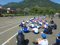 4月25日(木) 第1回目の運動会全体練習が行われました。園児から9年生までが一緒に活動する時間です。実行委員長を中心に、9年生が主体となって、活動を進めていきます。最上級生としての、心配りが随所に見られました。今年に限ったことではなく、去年の運動会でも見られた光景です。