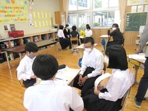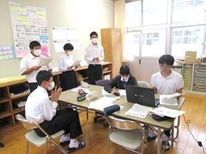 本校では自分で健康的な生活の仕方を考え、実践する力を育てるために健康探究活動を行います。25日(月)は「みんなの健康守り隊」によるオリエンテーションを行いました。小グループで健康について自分の生活を見直し、食生活や睡眠、ゲームなどについての意見交換が積極的に行われました。最後はグループの代表が話し合い内容を発表していましたが、改善点や取組目標等まで協議が進んだグループも見られました。次回は講師を招いて活動を行います。