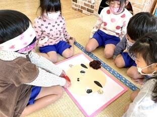 今週、幼稚園では「お正月遊びをしよう」の活動に取り組みました。書き初めでは自分のがんばりたいことを力強く書いていました。「たこあげ」も寒さに負けず運動場を走り回って楽しみました。その他「すごろく」「カルタ」「福笑い」など仲良く、楽しみながら活動できました。昔から続けられているお正月遊びの楽しさを感じ取ってくれたと思います。