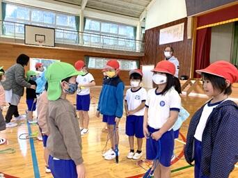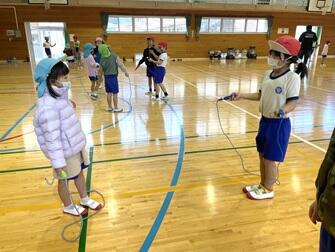 26日(水)に幼稚園生と1・2年生で行ってきたなわとび練習の発表会を行いました。練習前と比べ、教えてもらった幼稚園生だけでなく、教えた1・2年生も技能の向上が見られ、相乗効果を感じられた発表会でした。振り返りでは「幼稚園生が教えたとおり跳んで上手になってうれしかったです。」の意見もあり、子ども達も教え合いの大切さを実感していました。