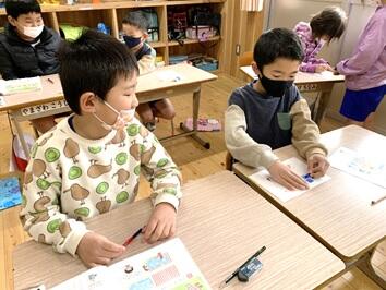 1日(火)に4月から1年生になるにじ組さん(年長)が1年生教室に体験入学しました。はじめこそ緊張した様子でしたが、迎える1年生も大喜びで音楽や体育など授業を楽しく体験しました。給食も時間いっぱいに食べ終わりました。1年生が積極的に教える場面も多く見られ、1年生の成長も同時に感じました。4月の入学を楽しみにしています。