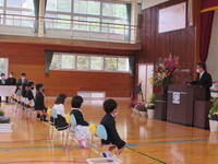 4月12日(火)に西郷幼稚園入園式と西郷義務教育学校入学式を行いました。新型コロナウイルス感染症の拡大状況を考慮し、在校生の参加人数を制限する形で実施しました。会場に入れない在校生の教室と式典会場の体育館をリモートで結び、ゆめ組(年中)さんや1年生の姿を見てもらいました。途中、歓迎の言葉の時には教室からの拍手の音が体育館まで聞こえてきて、温かい雰囲気に包まれました。これから、ゆめ組さんも1年生も安心して幼稚園・学校生活を送ってほしいです。