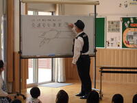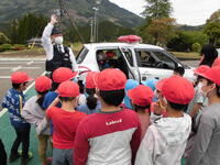 4月19日(火)に交通安全教室を行いました。幼稚園の年中組から2年生までが交通安全について学びました。まず、多目的スペースで映像を見ながらの座学でした。みんな意欲的に手をあげ発表していました。次に実際の通学路で横断歩道歩行練習をしました。しっかり左右確認をして、高く手をあげて歩くことができていました。最後にパトカーを使って、チャイルドシートの必要性について学びました。お世話になった西郷駐在所の上野様、日向地区交通安全協会指導員の方々、どうもありがとうございました。