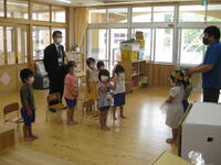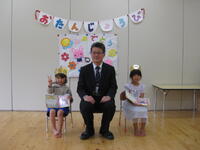 26日(火)に、幼稚園で4月のお誕生会が行われました。4月生まれのお友達は2人です。みんなに拍手で迎えられ、少し恥ずかしそうにしていましたが、質問にはしっかりと答えてくれました。園長先生から記念の書き込み式絵本をプレゼントをいただき、記念撮影もしました。これからも元気に園生活を送ってほしいです。