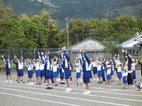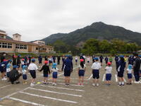次は「集団行動」の練習です。「気をつけ」「礼」「まわれ右」等の動作のポイントを団長が説明します。みんなポイントを意識して取り組んでいました。園児や1年生に丁寧に教えている上級生の姿も見られました。同じ目線で分かりやすく、さりげなく行動できる9年生、恐るべし!
