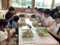 子どもたちは、学校行事をはじめ、異学年での様々な交流活動をしてきましたが、「食事をしながらの交流の時間」は、子どもたちの表情や空気感が何か今までとはちょっと違う感じがします。とても素敵な時間でした。