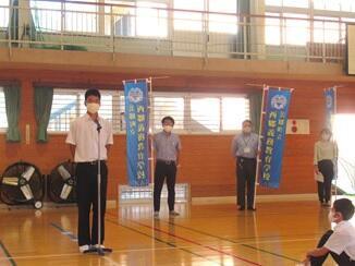14日(水)に今週末から始まる県中学校総合体育大会に向けての激励会を行いました。各部からの力強い決意の言葉の後、校長先生から励ましの言葉、選手宣誓と続きました。9年生にとっては最後の大会です。悔いなく精一杯の力を発揮できることを祈ってます。がんばれ!!西郷義務教育学校生!!