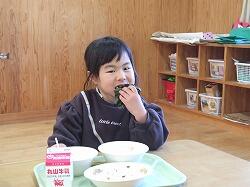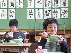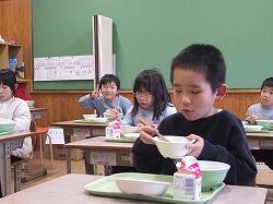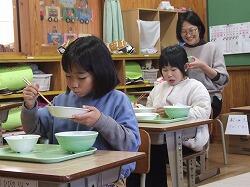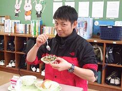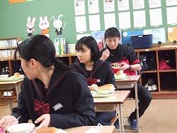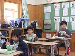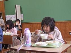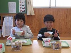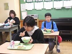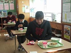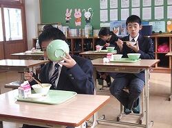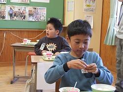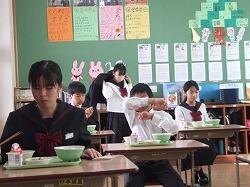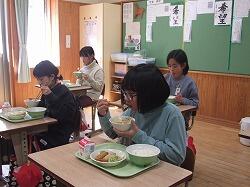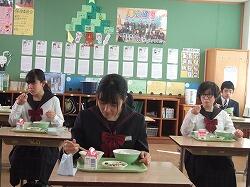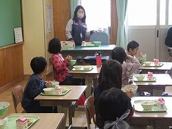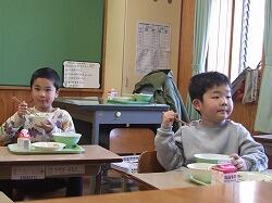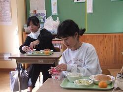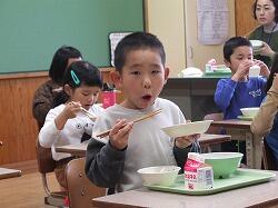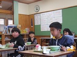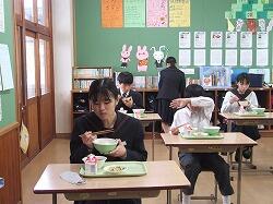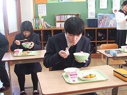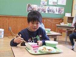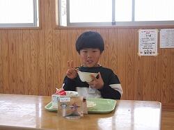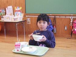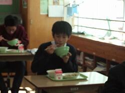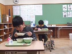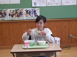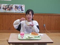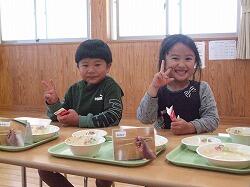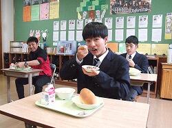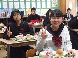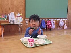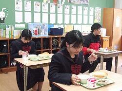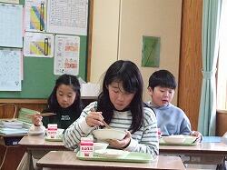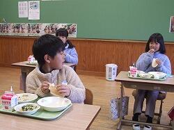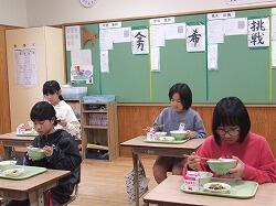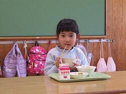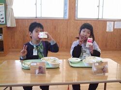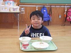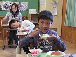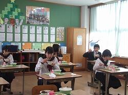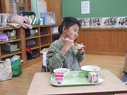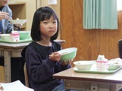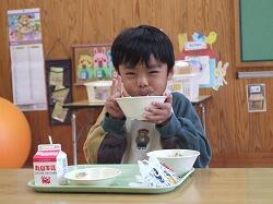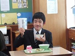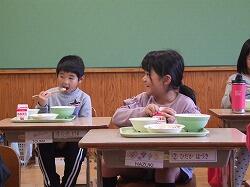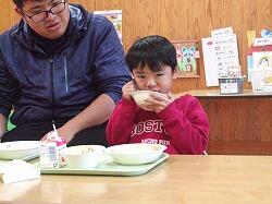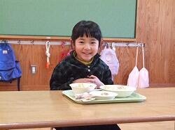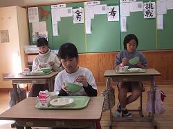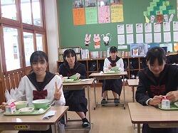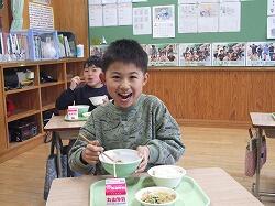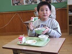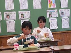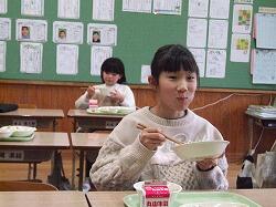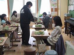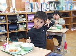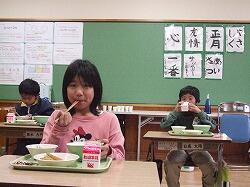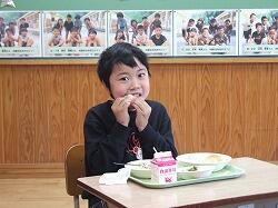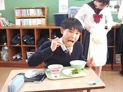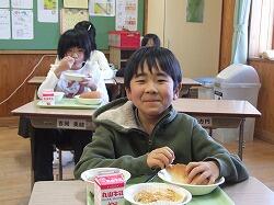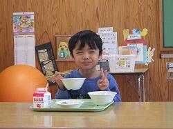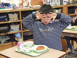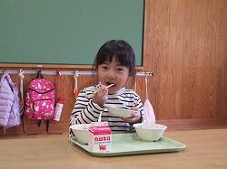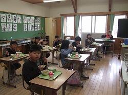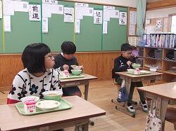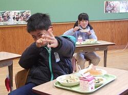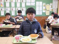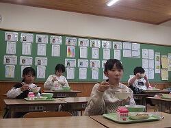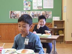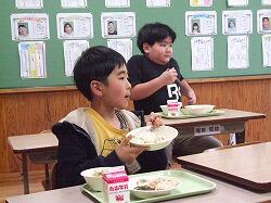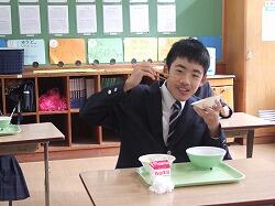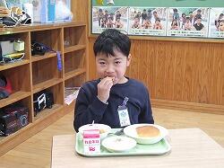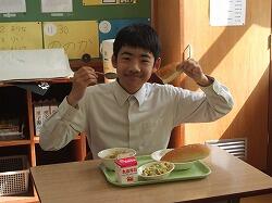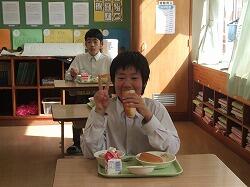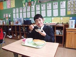 今日の給食は、交歓給食で、担任の先生と違う先生と給食を一緒に食べました。