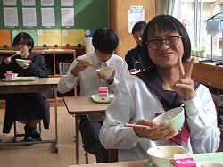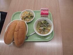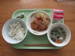〇今日の給食のメニューは、もずく丼、かき玉汁でした。