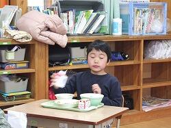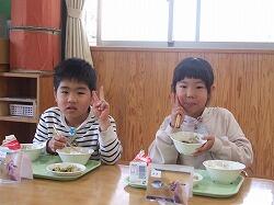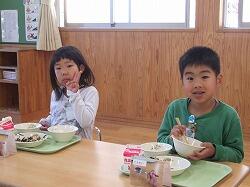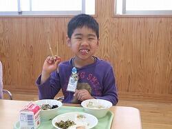 〇給食のメニューは、麦ごはん、煮魚こんにゃく、春キャベツの味噌汁でした。