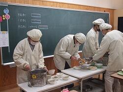明日の給食のメニューは、七草寿司、雑煮、田作り、紅白なますです。