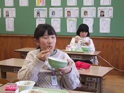 〇給食のメニューは、麦ごはん、千切り大根の炒め煮、白菜の味噌汁でした。