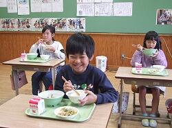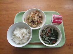 〇給食のメニューは、麦ごはん、ひじきの五目煮、かぼちゃと厚揚げの味噌汁でした。