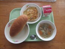〇給食のメニューは、ミニコッペパン、グラタン、野菜スープでした。