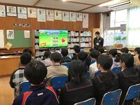 全国学校給食週間に合わせて、本校では23日(金)に給食感謝集会を行いました。今年は、みやざき地頭鶏事業協同組合のみなさんと関係者のみなさんにお越しいただき、みやざき地頭鶏の講話とみやざき地頭鶏の炭火焼きの試食の食育活動を行いました。